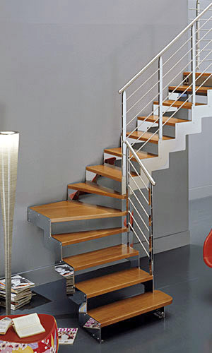 L’acciaio della struttura si modella al legno massello dei gradini in una