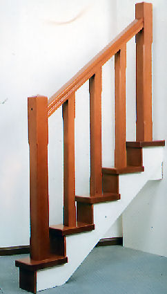 legno massiccio gestito a settori, colonnette tornite o fresate, capiscala