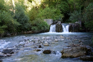 | almeno a 1000 metri di quota: acque tumultuose, cristalline e gelide, aspre vette circostanti, verde intenso |