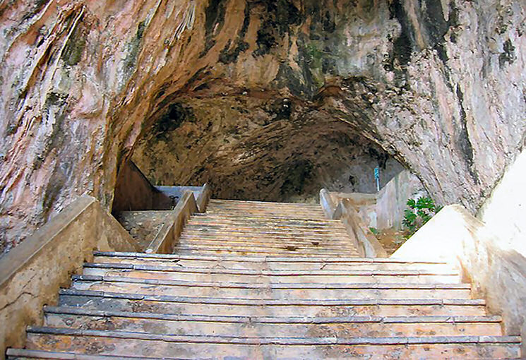 | formata dalla millenaria erosione delle acque marine, nella nicchia dell'altare della grotta c'è la copia |